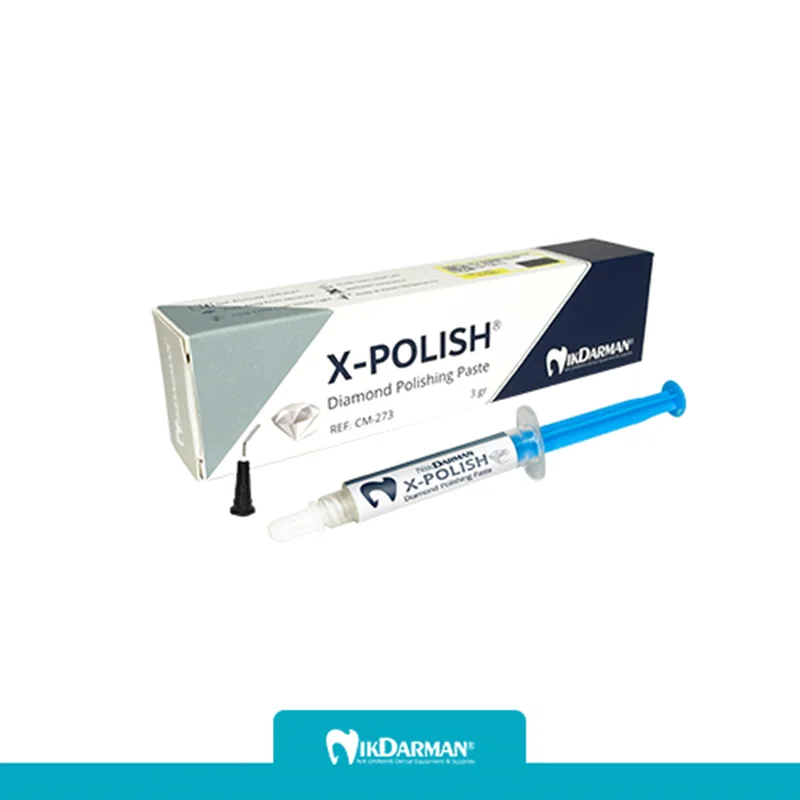 خمیر پرداخت الماسه نیک درمان (ایکس-پالیش) ترکیبی همگن حاوی ذرات میکروکریستالی الماس، ساینده ای بسیار موثر و بی خطر برای پرداخت سطح کامپوزیت، آمالگام، پرسلن و کستینگ می باشد. آلومینای موجود در ترکیب موجب براقیت بالای سطوح می گردد. قوام مناسب محصول موجب سهولت استفاده و عدم پاشش حین کار می شود. فرمول بهینه محصول تضمین کننده عدم تغییر قوام و خشک شدن محصول، عدم لکه گذاری روی سطوح و شستشوی آسان با آب می باشد. محصول فاقد ترکیبات سمی موجود در محصولات مشابه می باشد.