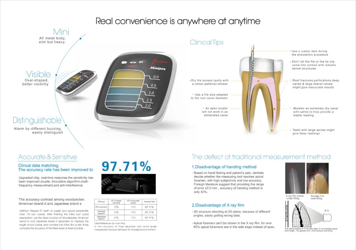 این دستگاهها با استفاده از تکنولوژیهای مختلفی مانند فرکانسسنجی یا امواج صوتی، قادر به اندازهگیری دقیق عمق کانال ریشه دندان میباشند.